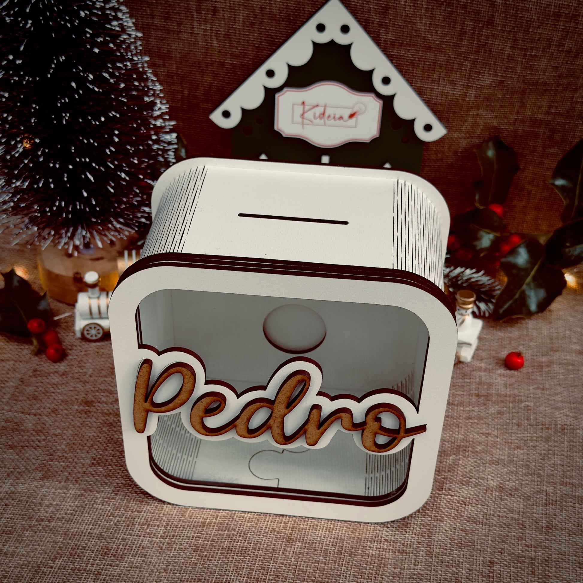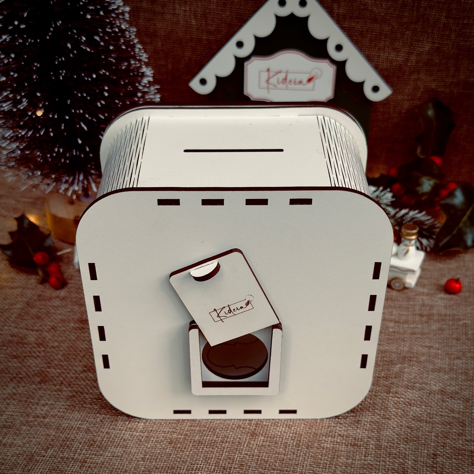 Mealheiro artesanal em madeira, com design simples e encantador.