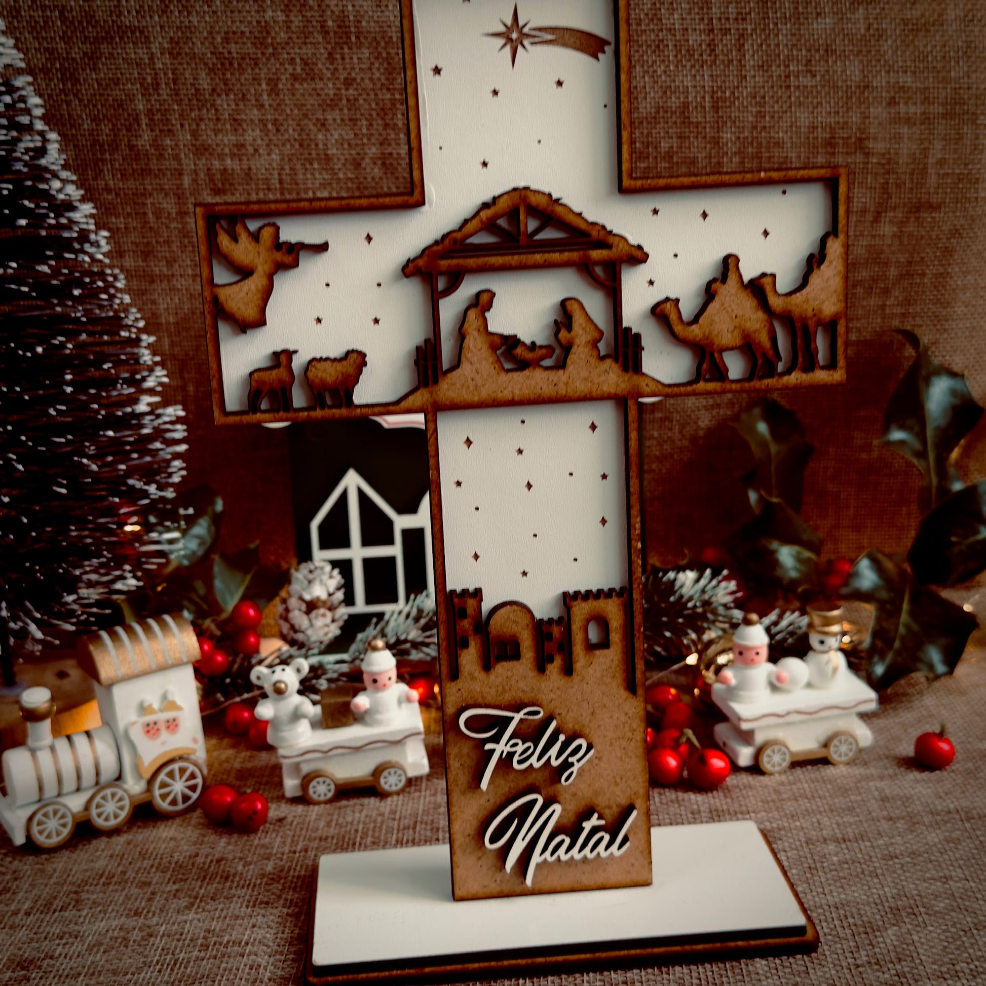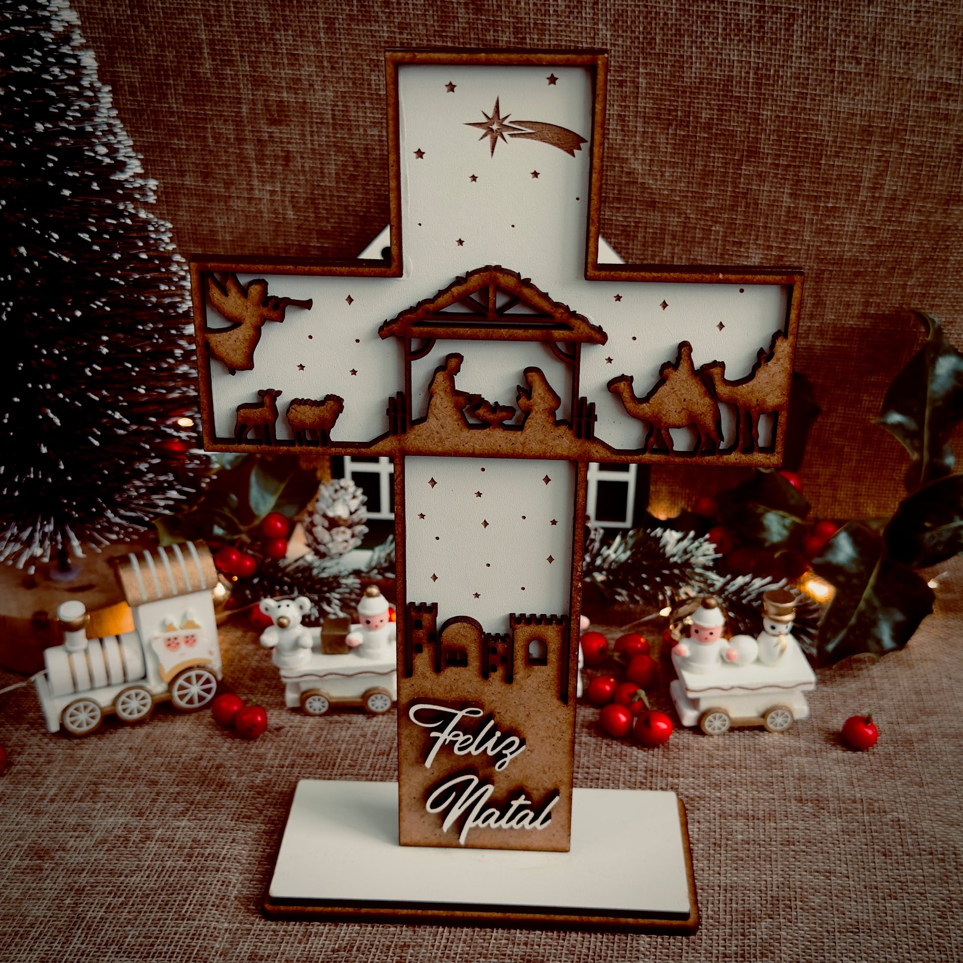 Presépio em madeira recortado, símbolo de fé e paz nesta época especial.